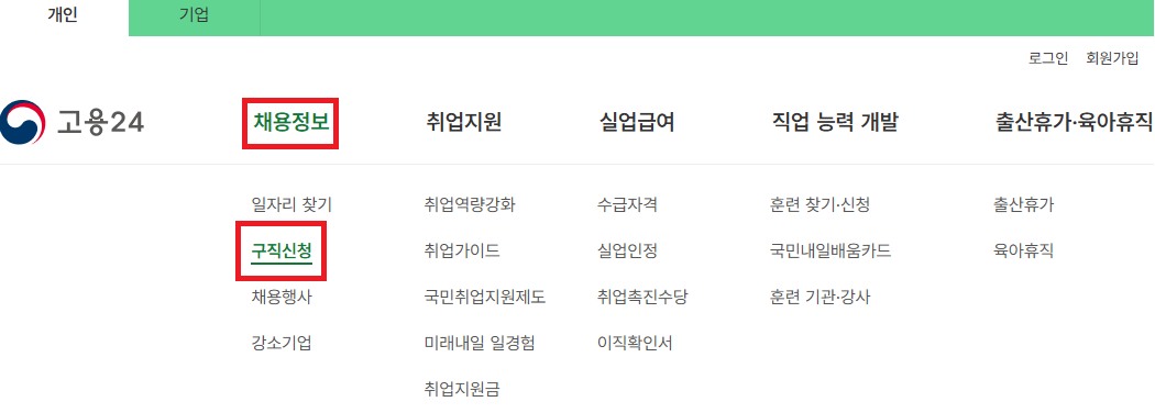 먼저 고용센터에서 구직등록을 해야 신청이 가능합니다.