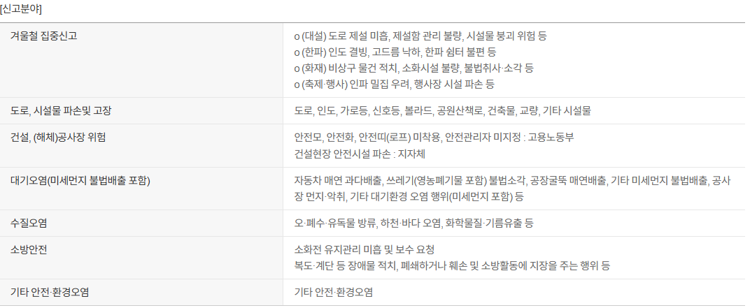 안전신문고로 통합 | 불법주정차 교통법규 위반 |