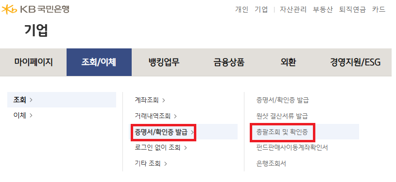 1. 국민은행 기업뱅킹 이체확인증 온라인 발급 방법