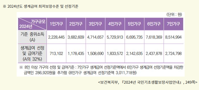 | 가구원 수 | 2024년 생계급여 기준 | 2025년 생계급여 기준 | 인상액 |