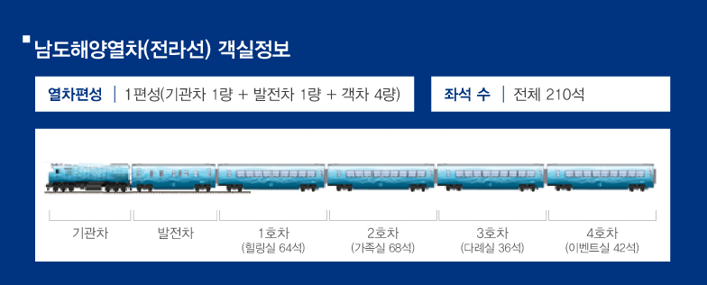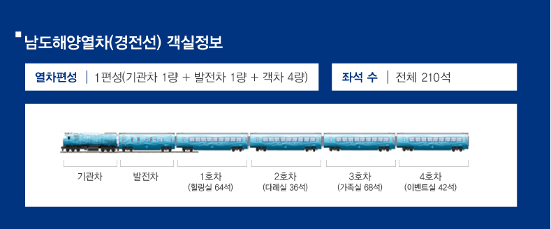 남도해양열차는 다양한 여행자의 요구를 충족시키기 위해 특별히 설계된 객실을 제공합니다: