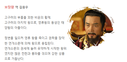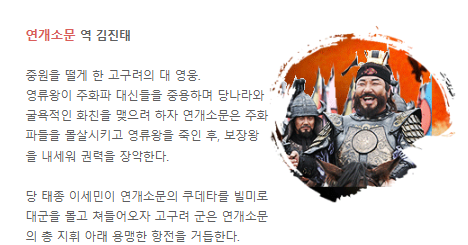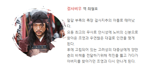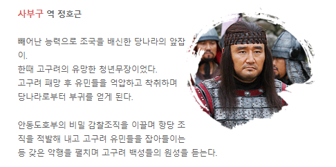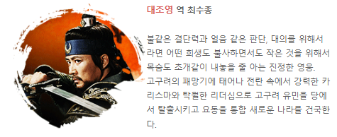 - 드라마 설정: 고구려의 멸망을 직접 목격하고, 유민들과 함께 독립 국가를 건설하는 과정을 중점적으로 다룸.
