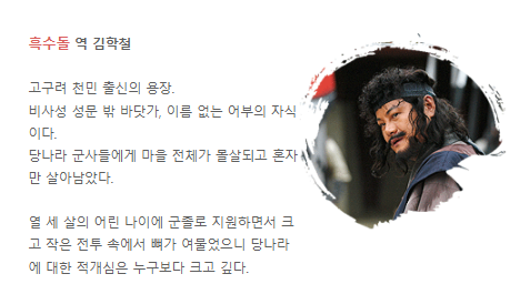 | 김학철 | 흑수돌 | 고구려 출신 장수, 대조영의 충직한 부하 |