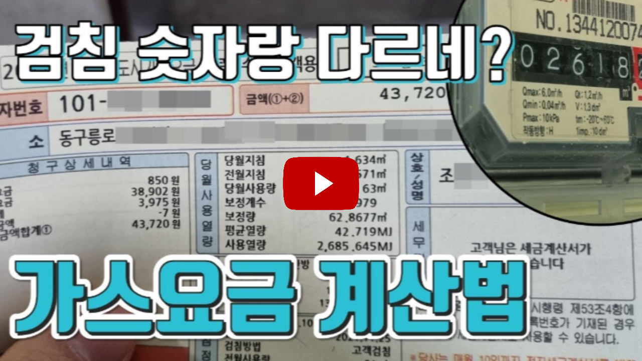 • 검침량: 당월지침에서 전월지침을 뺀 값으로, 사용한 도시가스 양을 나타냅니다.