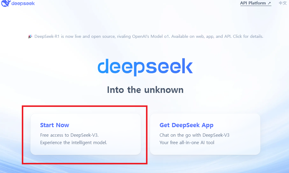 - DeepSeek 웹사이트(https://www.deepseek.com) 방문