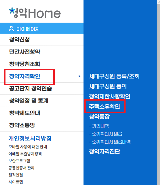 - 로그인 후 "주택소유 여부 확인서" 메뉴 선택.