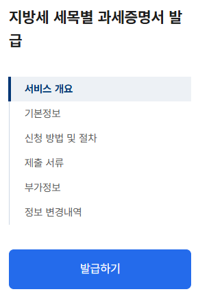 발급 서류: 세목별 과세증명서.