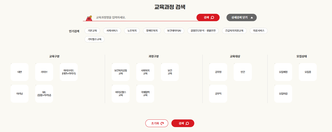 회원가입 및 로그인을 완료했다면, 이제 원하는 교육과정을 검색하고 선택할 수 있습니다.