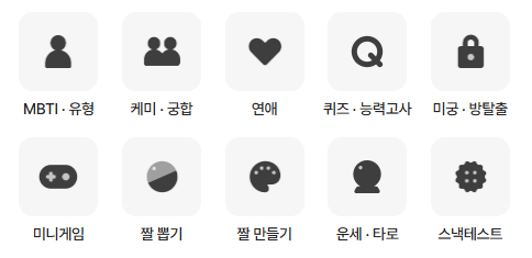 - 연애 심리 테스트: 이상형 분석, 연애 습관 점검 등 다채로운 콘텐츠 제공
