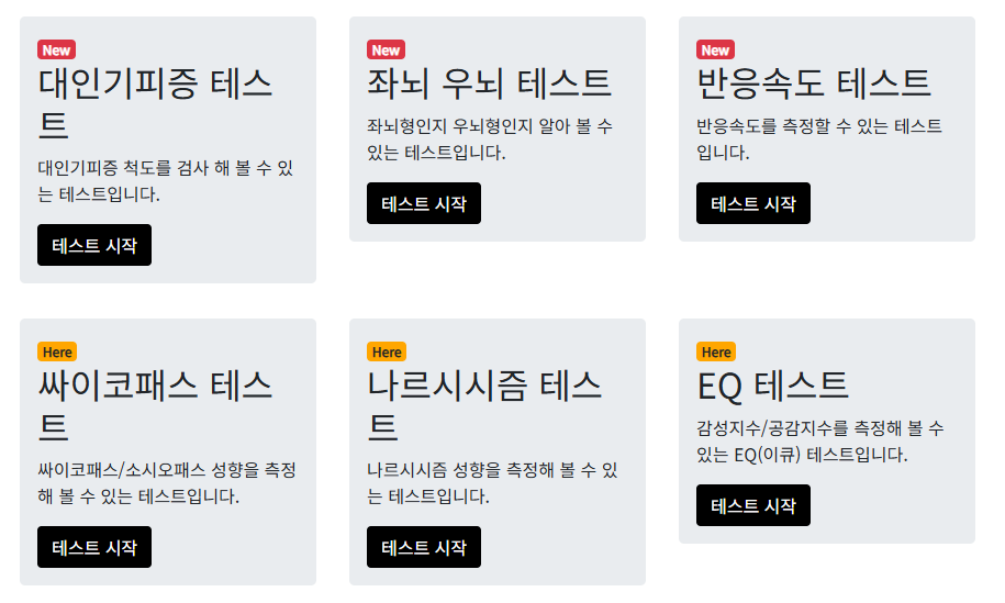 - 참여자 수 공개: 각 테스트의 신뢰도를 확인할 수 있도록 응시자 수를 명시