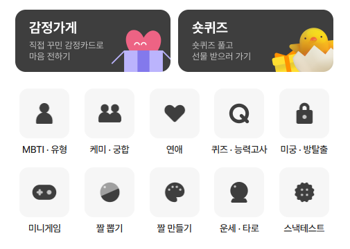 - 커플 궁합 테스트 → 연애 성향에 따른 갈등 요소 및 해결 방법 확인