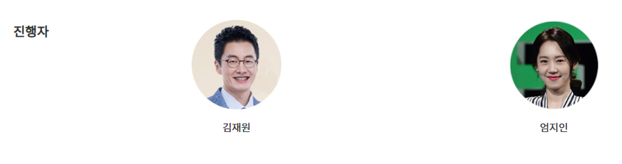 - 메인 MC: 김재원, 엄지인이 프로그램의 중심을 맡아 진행하며, 특유의 따뜻하고 유쾌한 진행으로 시청자와 소통합니다.