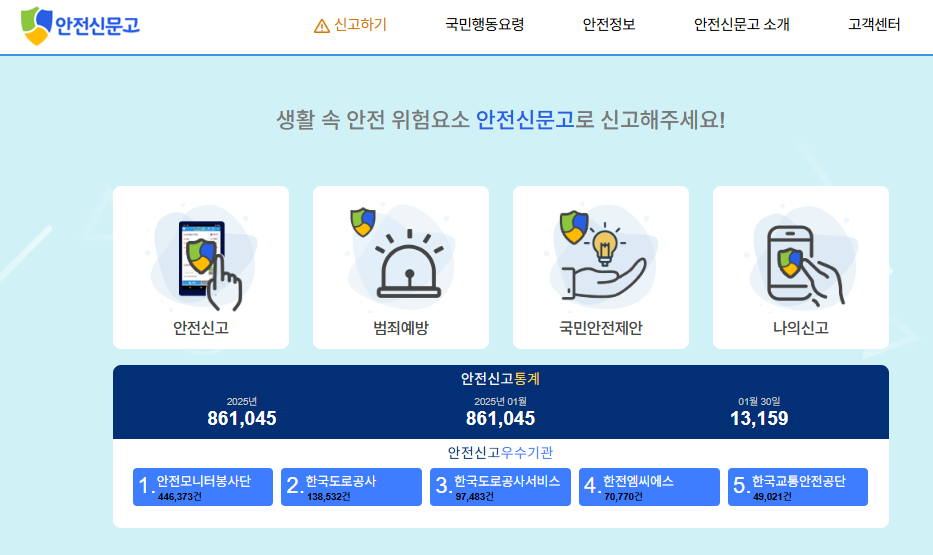 | 안전신문고 고객센터 | ☎ 1544-0112 | 앱 사용 및 신고 접수 문의 |