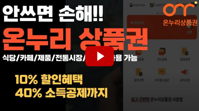 - 온누리상품권 충전 시 10% 할인 혜택을 받으며, 사용 시 추가 소득공제(40%)가 적용될 수 있습니다.