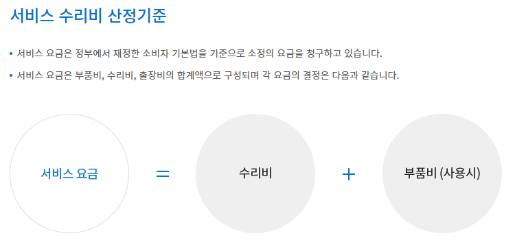- 서비스 비용은 제품의 보증 기간 및 수리 항목에 따라 다르니, 상담 시 미리 확인하세요.