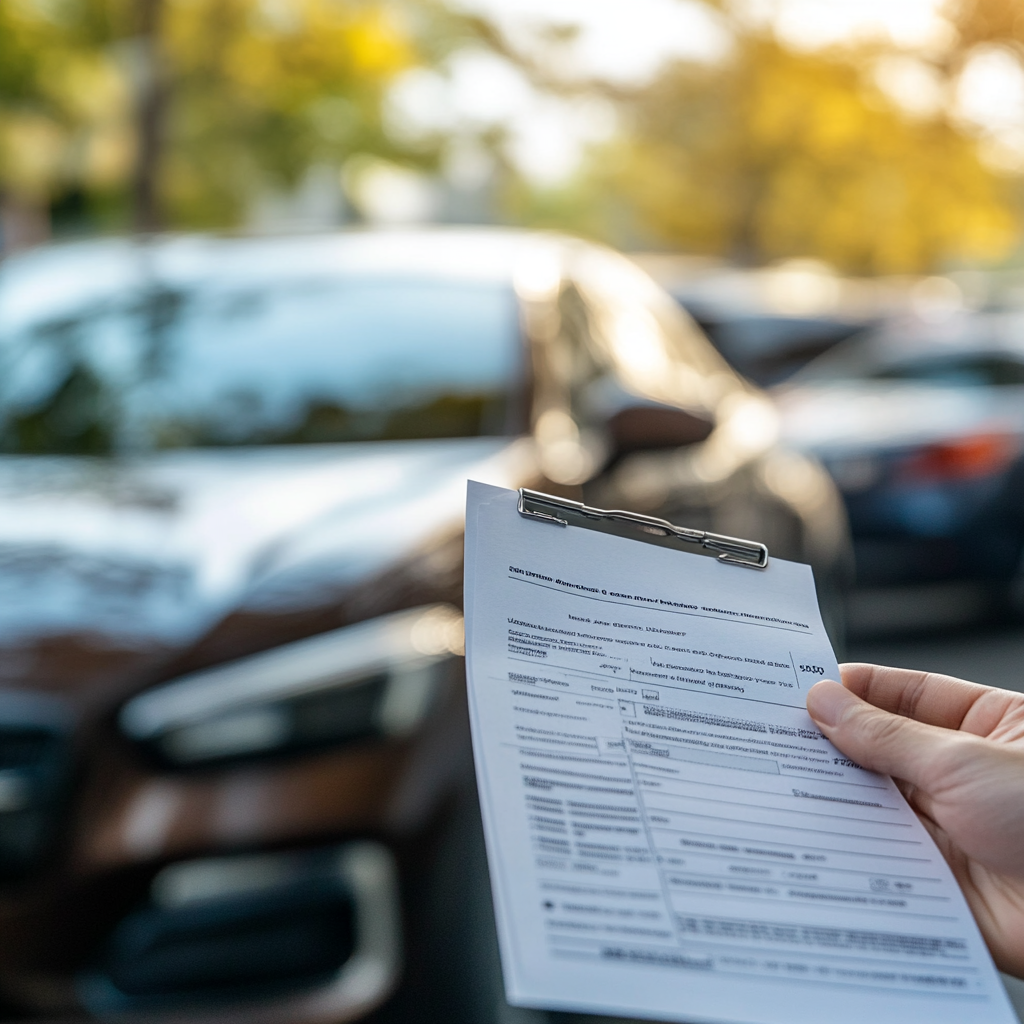 중고차를 구매한 경우 차량의 안전성과 성능을 확인하기 위해 검사소에서 발행한 차량 검사지가 요구됩니다. 이는 차량이 도로에서 운행 가능한 상태임을 증명하는 서류입니다.