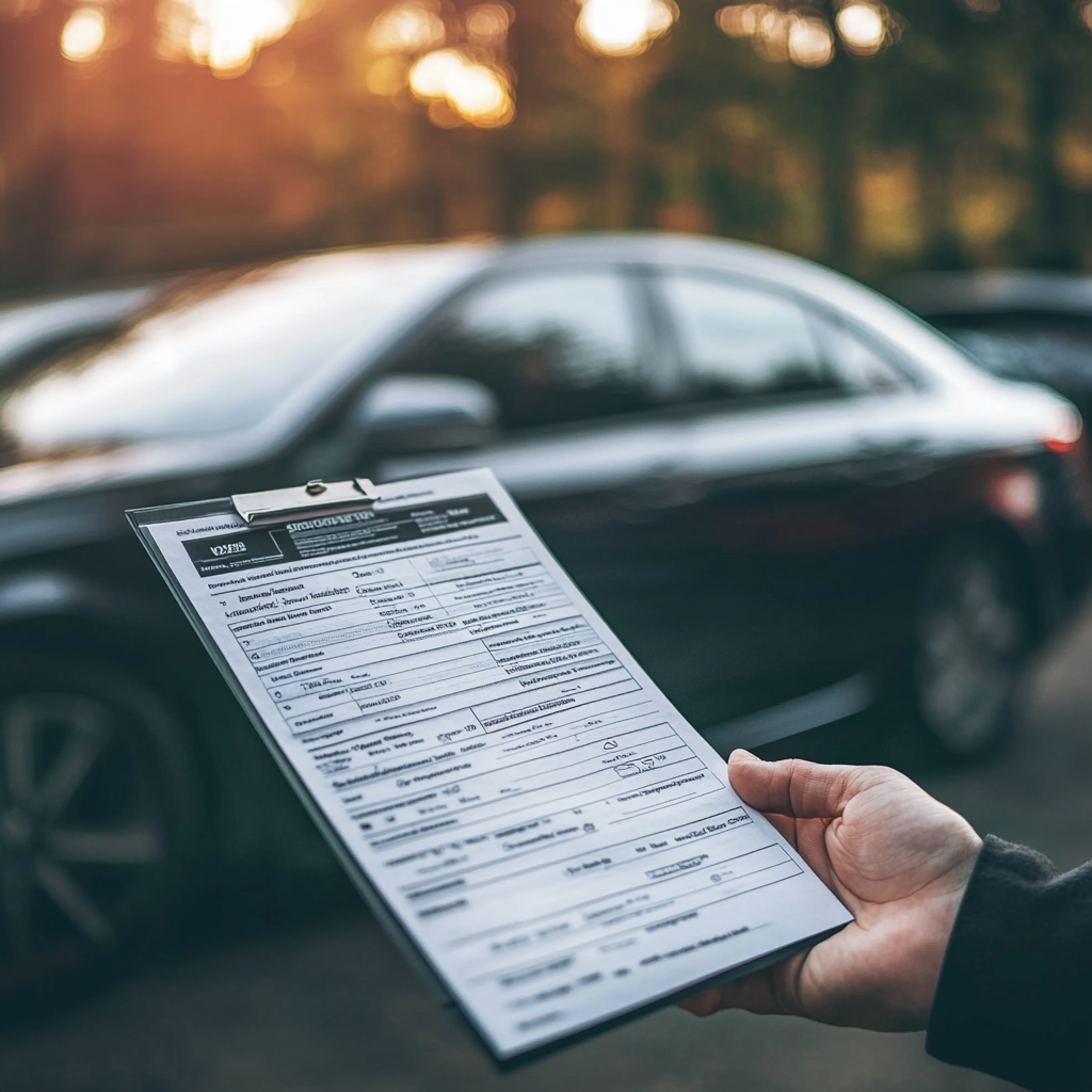 중고차를 구매한 경우 차량의 안전성과 성능을 확인하기 위해 검사소에서 발행한 차량 검사지가 요구됩니다. 이는 차량이 도로에서 운행 가능한 상태임을 증명하는 서류입니다.