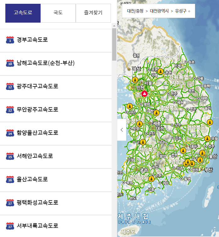실시간 교통상황, 구간별 소통정보, CCTV 영상 등을 제공합니다.