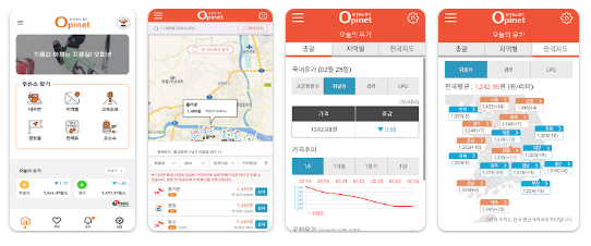 - 오피넷 앱을 이용하면 주변에서 가장 저렴한 주유소를 검색할 수 있습니다.