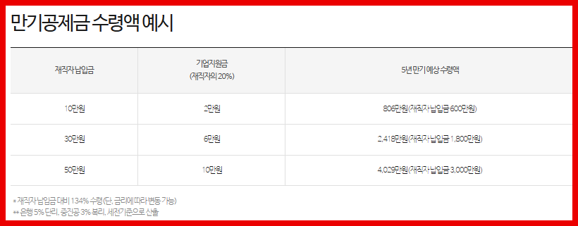 - 월 50만 원씩 5년간 적립 시, 약 4,027만 원 수령 가능.