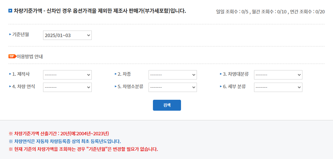 - 제작사, 차종, 연식, 세부 모델을 입력 후 검색