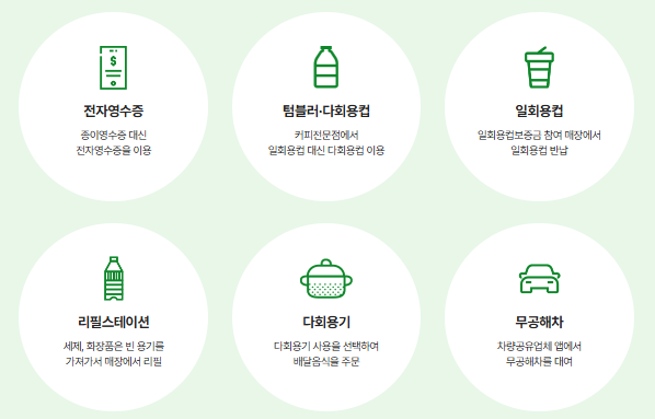 텀블러 사용 외에도 전자영수증 발급, 일회용컵 반환 등을 통해 포인트를 적립할 수 있습니다.