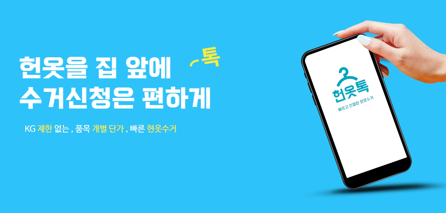 | 헌옷톡 | 10kg 이상 | 500원 | 직영기사 수거로 서비스 신뢰도 높음 | 대전·세종·충청 |
