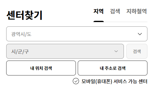 - 홈페이지 내 '서비스센터 찾기' 메뉴에서 지역 검색