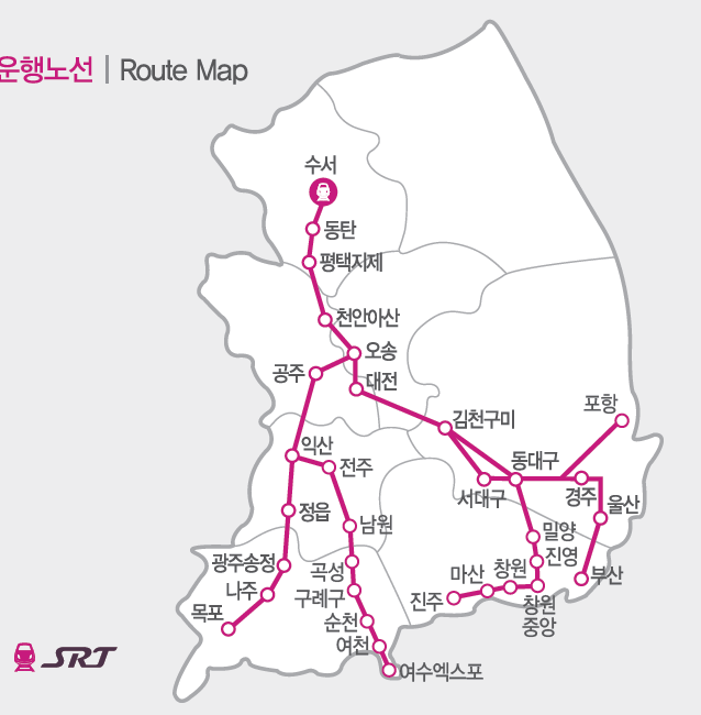 SRT는 수서를 출발하여 주요 도시까지 연결되는 노선을 제공합니다. 주요 정차역은 다음과 같습니다:
